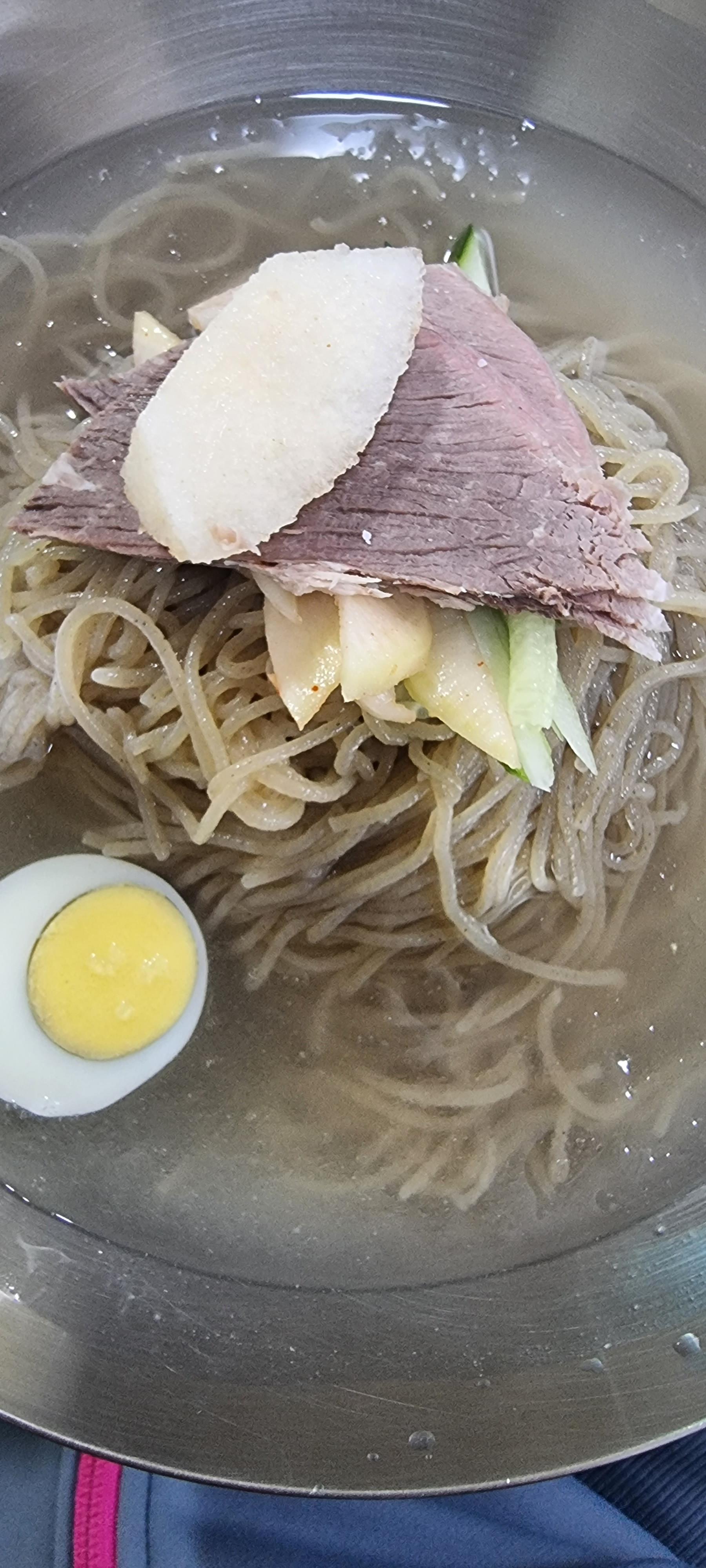 가기 전에, 냉면을 성스럽게 접함.