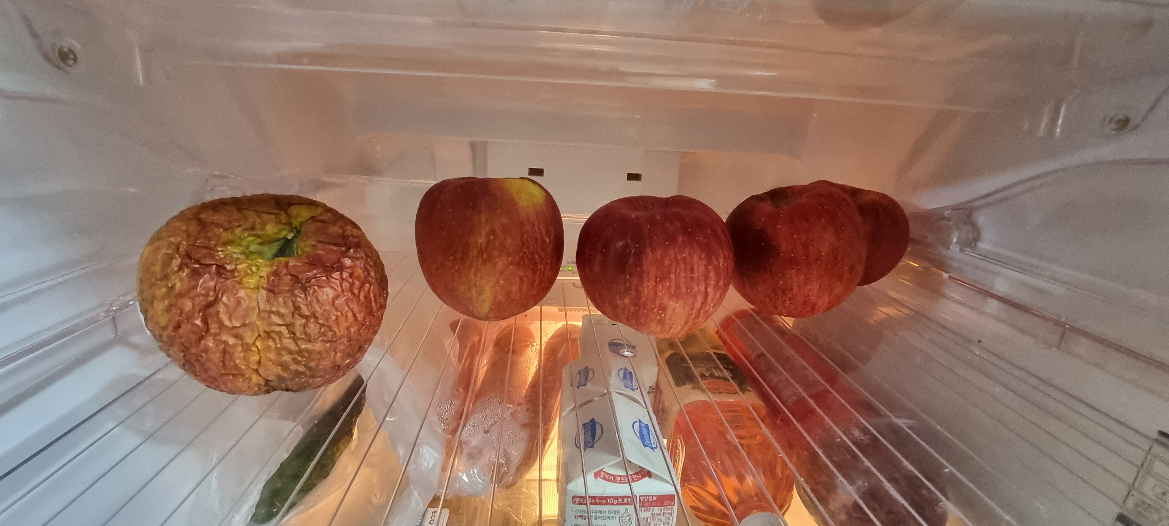저 사과 아직도 안 썩고, 저러고 있음.