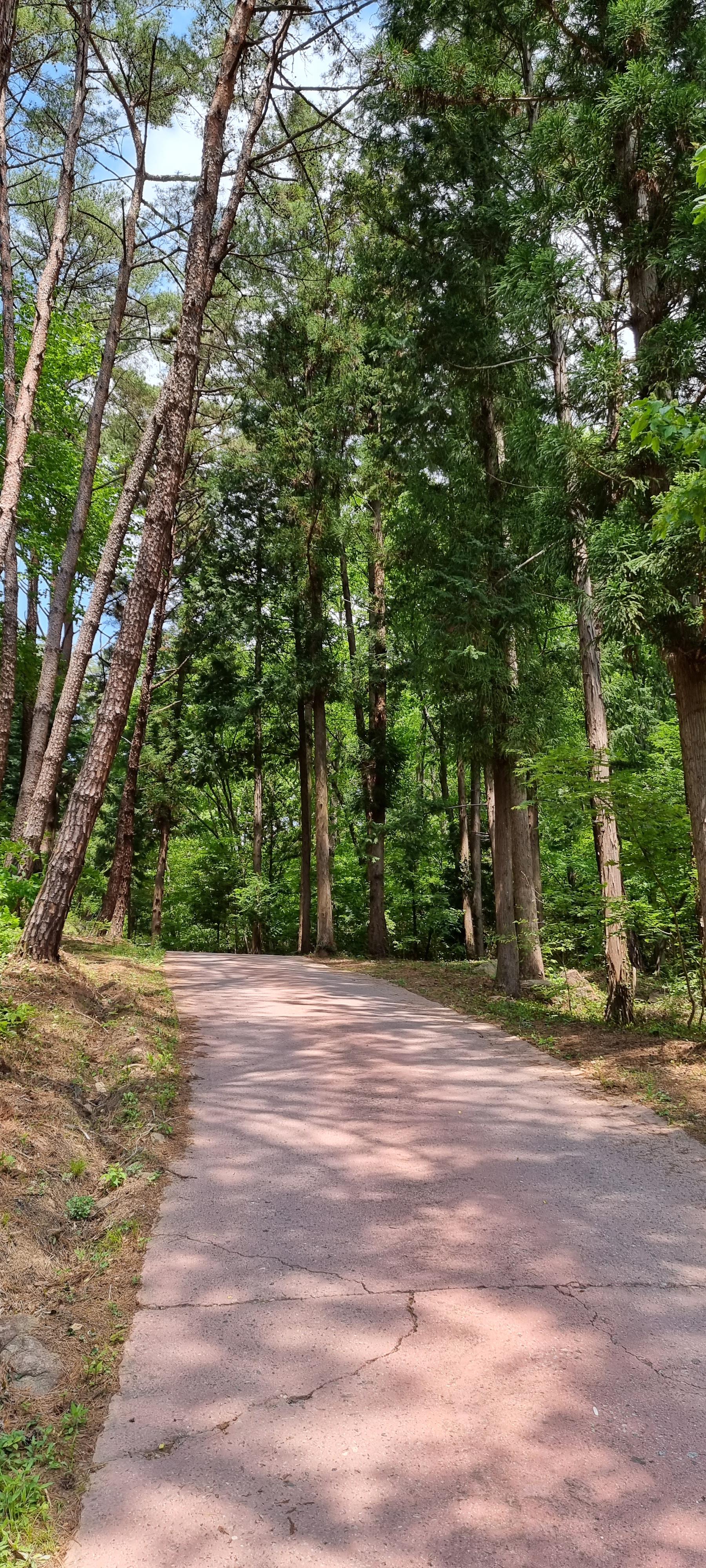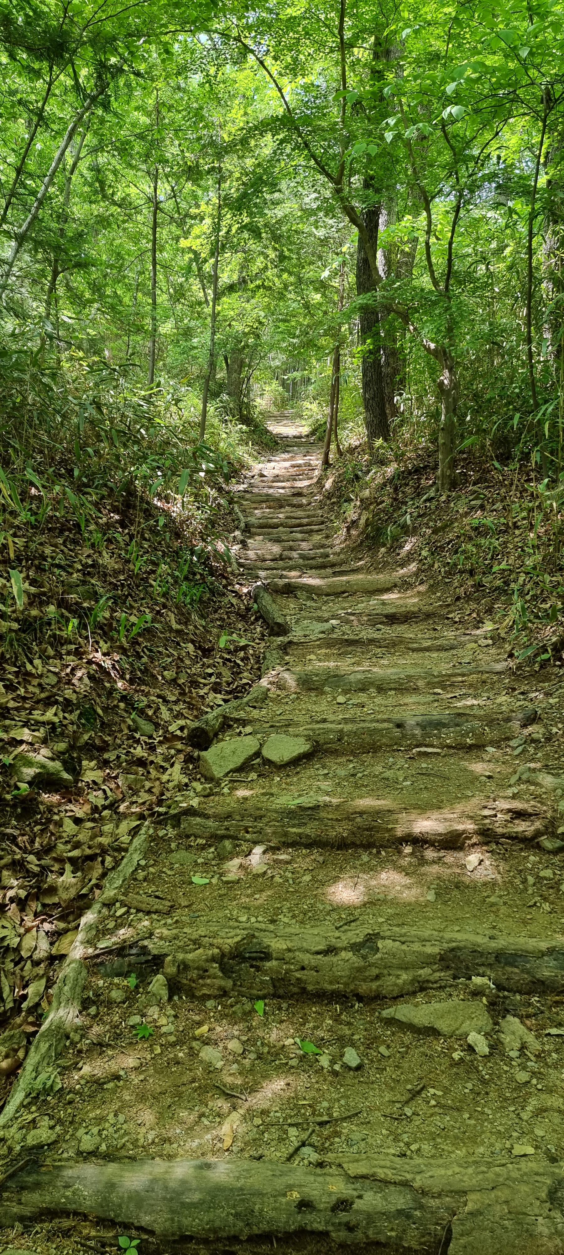 올라가는 길이 넓고 평탄함.