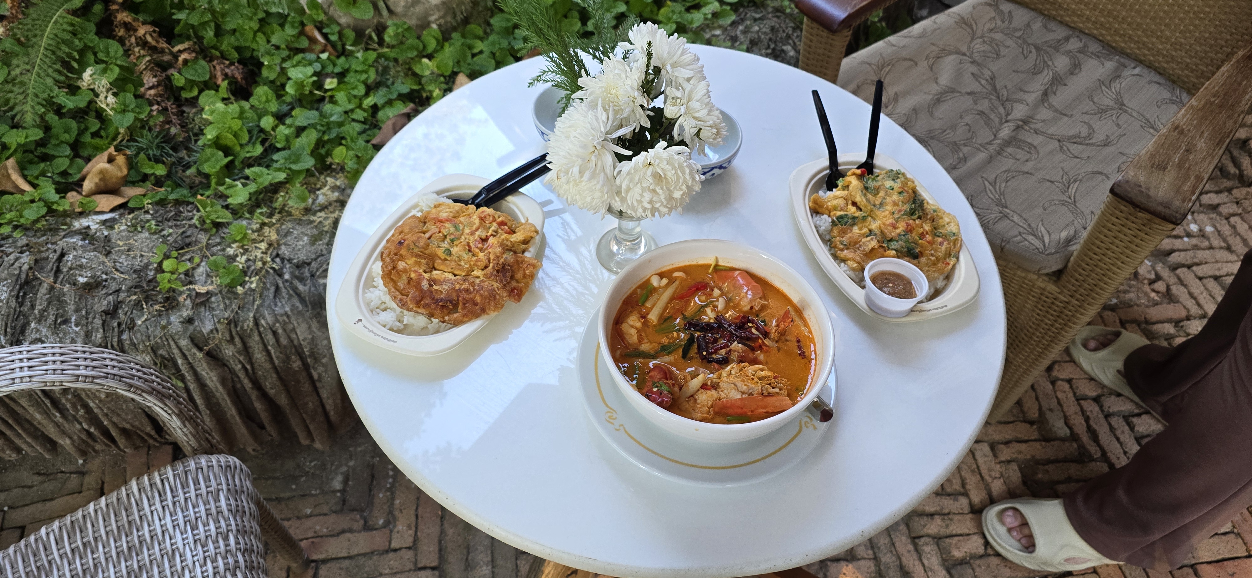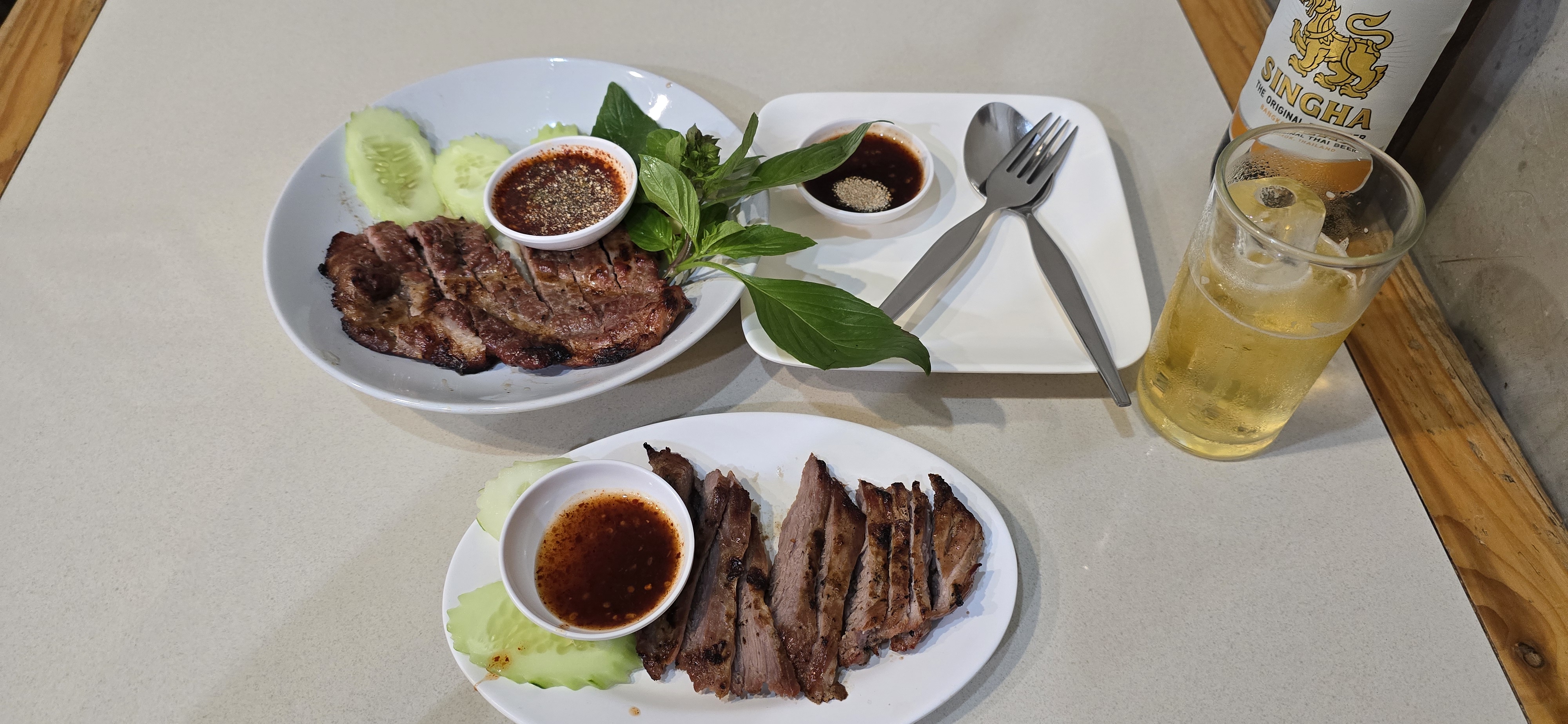 옆 테이블 두 명이 달랑 닭구이와 옥수수 쏨땀을 시켜 먹어서 뻘쭘함.