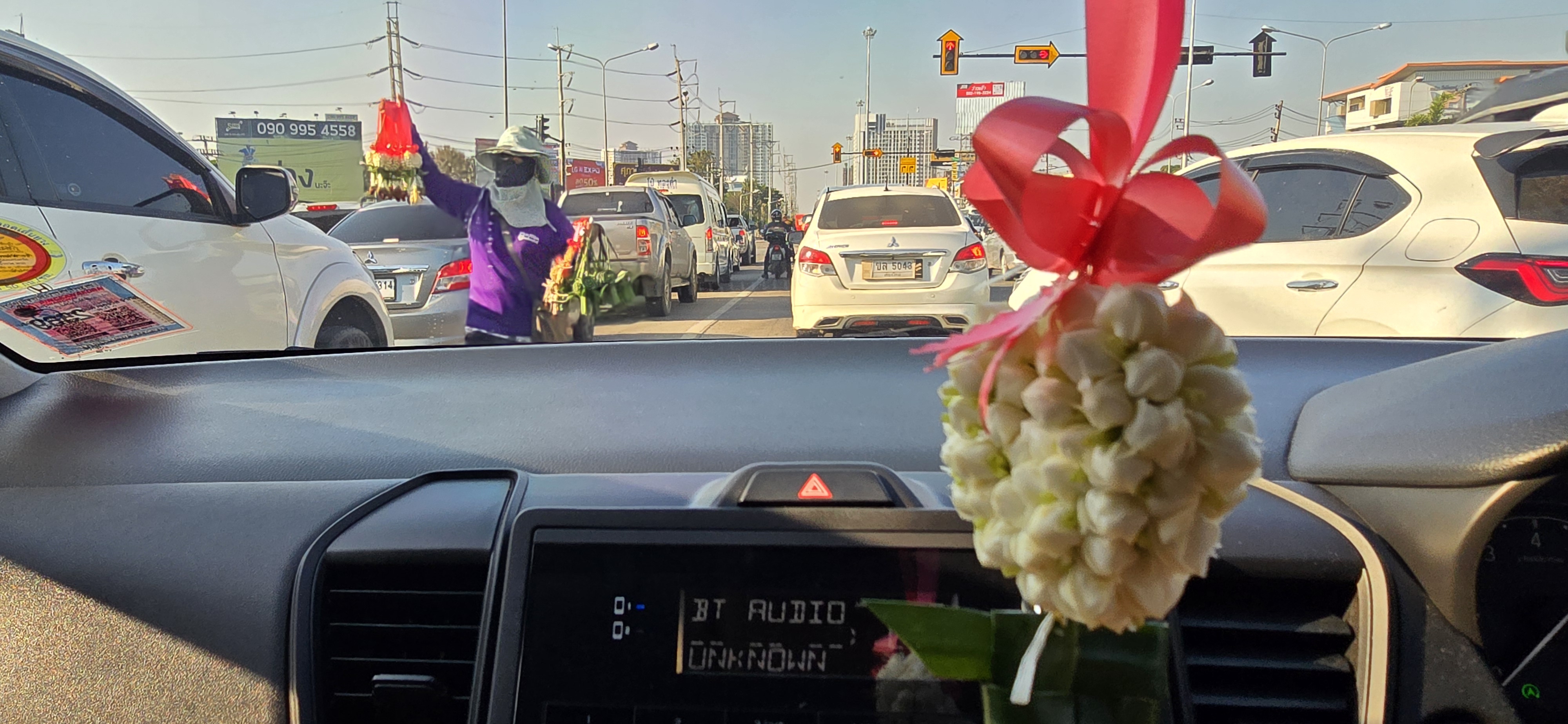 차가 너무 막혀서 오토바이 택시 탐.