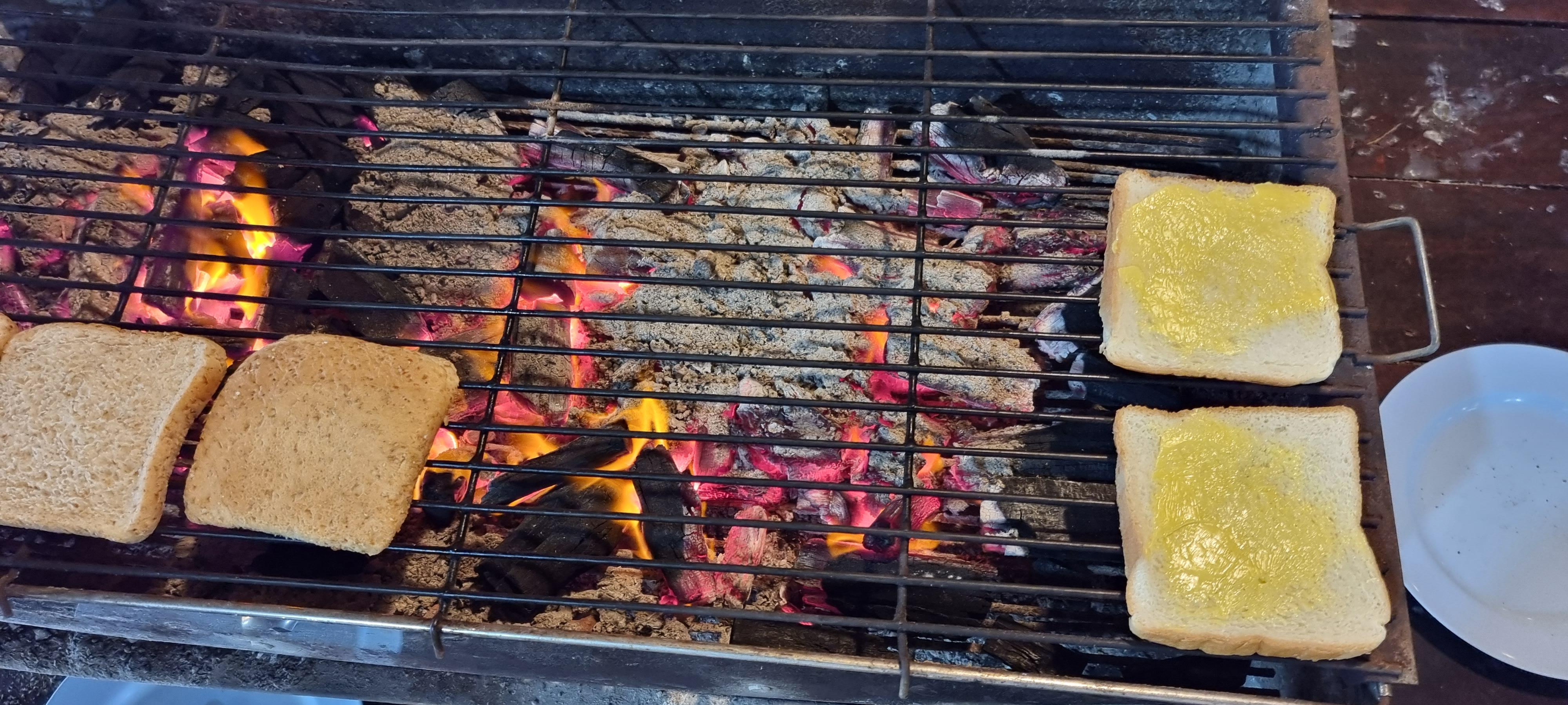 아침에 일어나면 의무감으로 먹어주는 숯불 식빵.