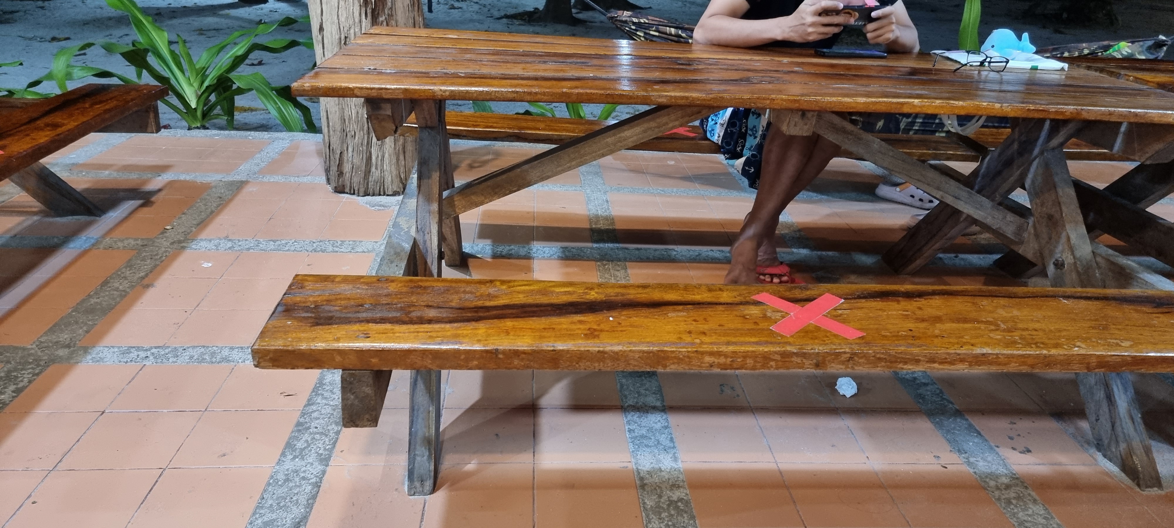 코로나 거리 두기의 흔적.