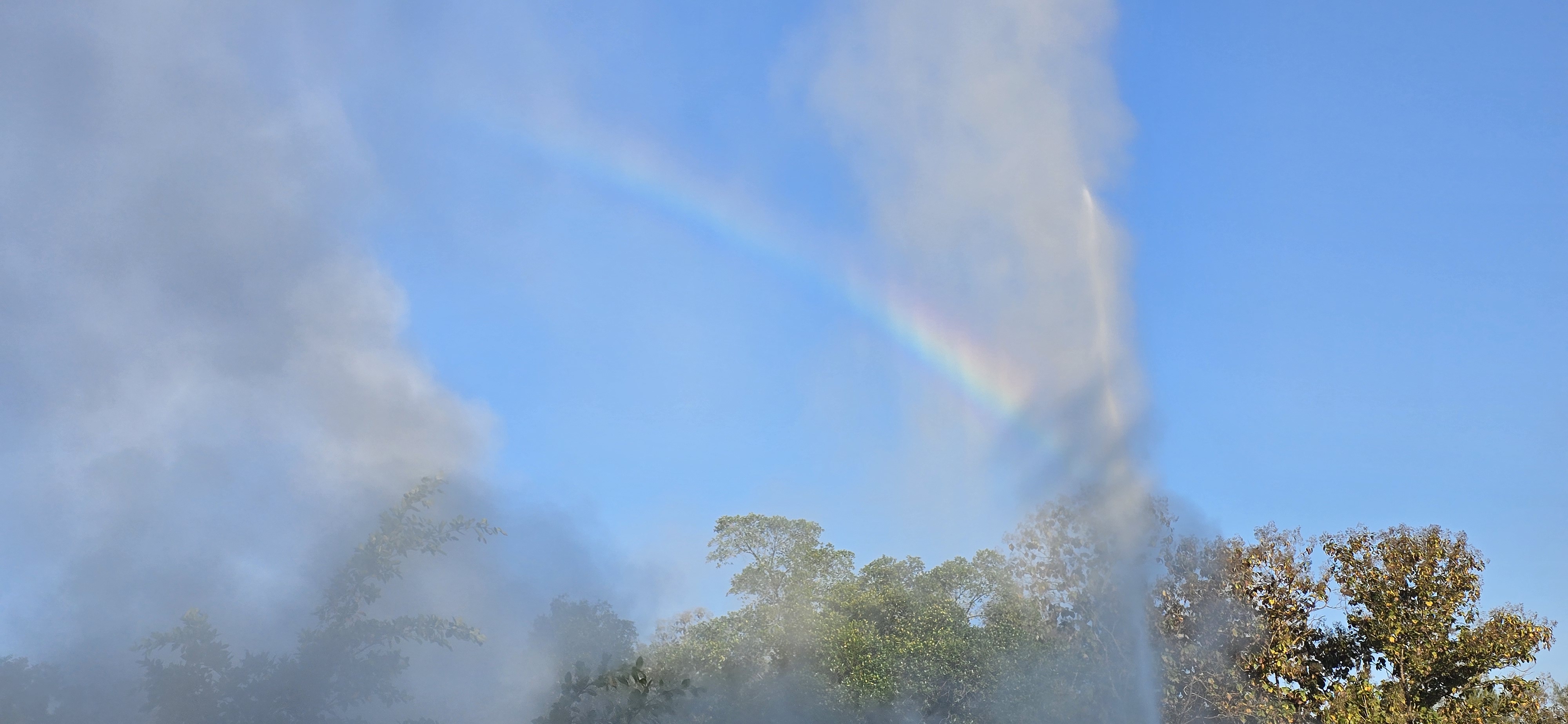 아무도 없는 온천에 무지개뜸.